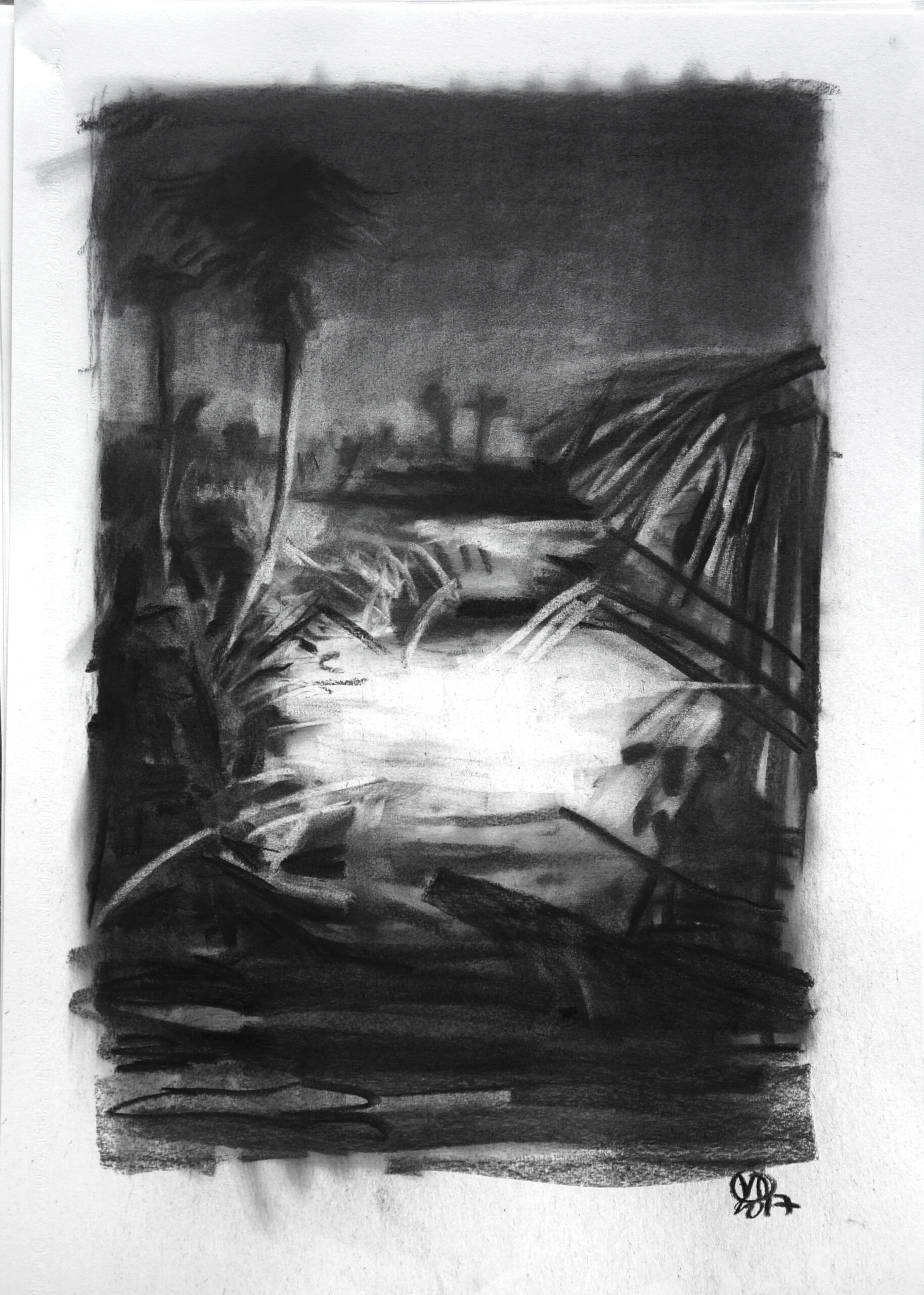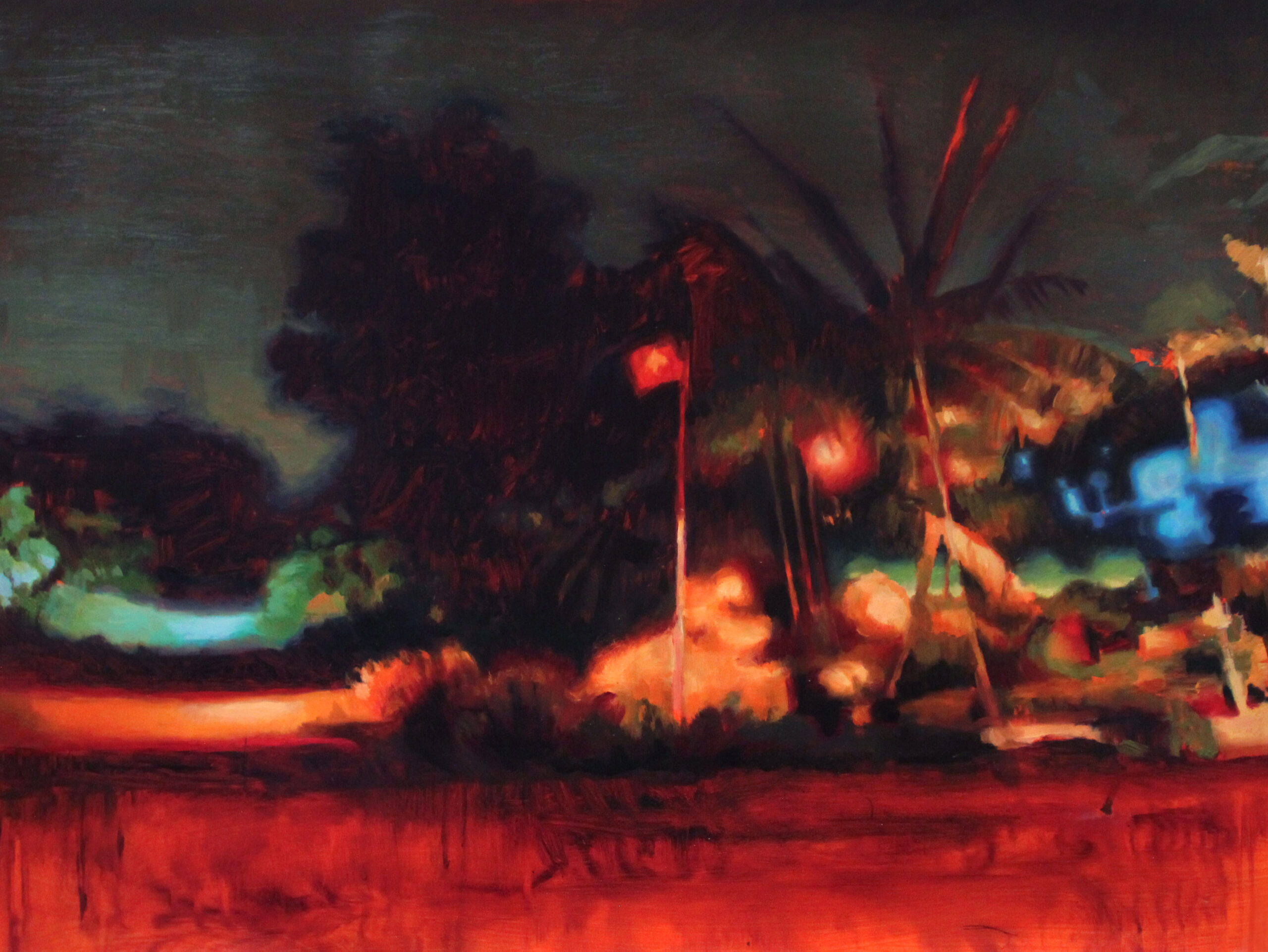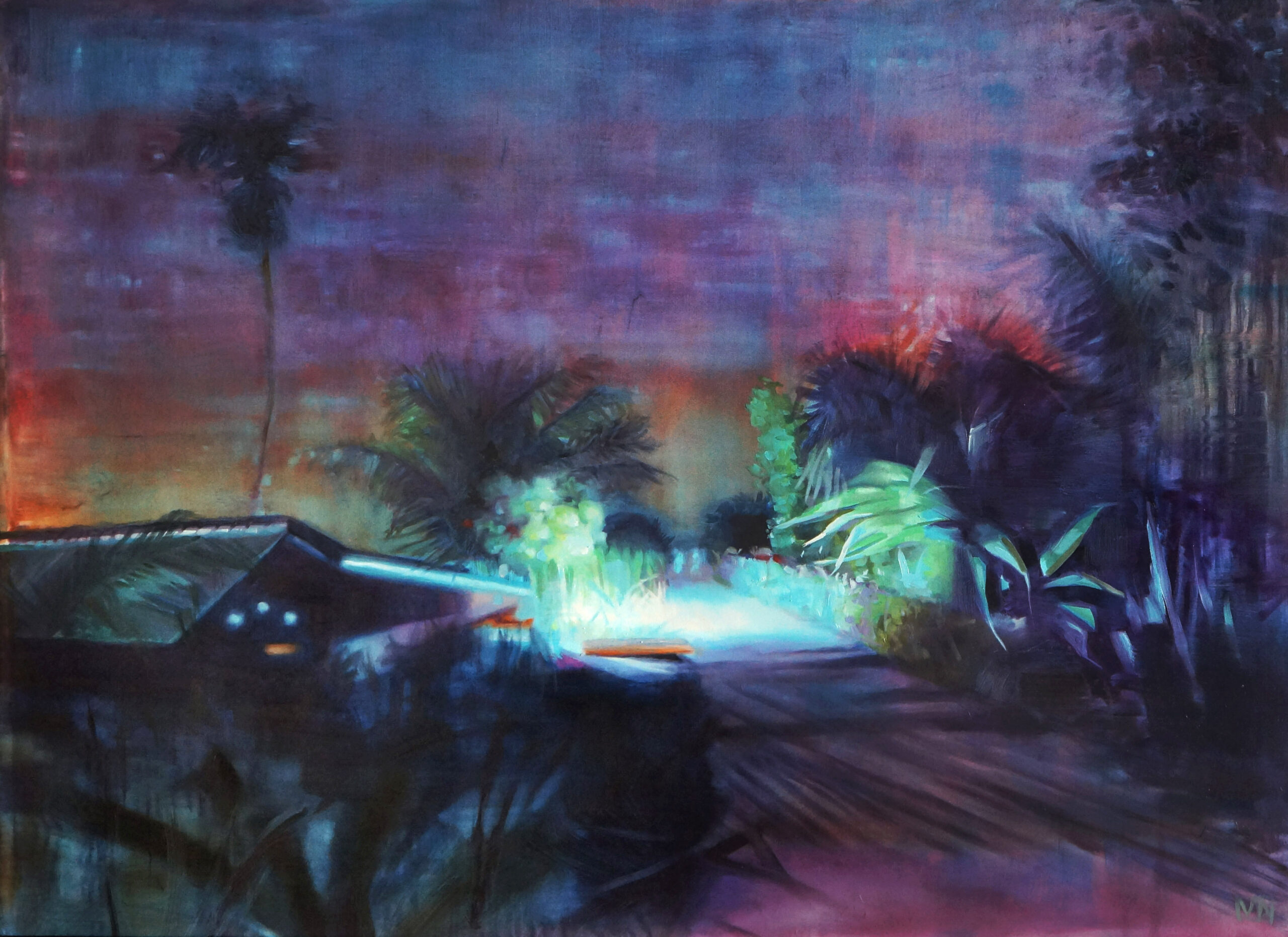 Entre lumières artificielles, éclats urbains et zones d’ombre dominées par une nature vivace, la série plonge dans une errance visuelle faite de découverte et d’incertitude — comme une déambulation nocturne où les repères vacillent.