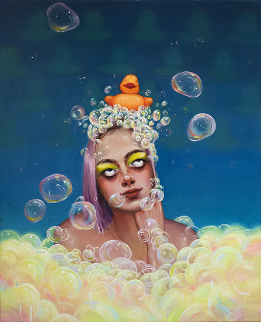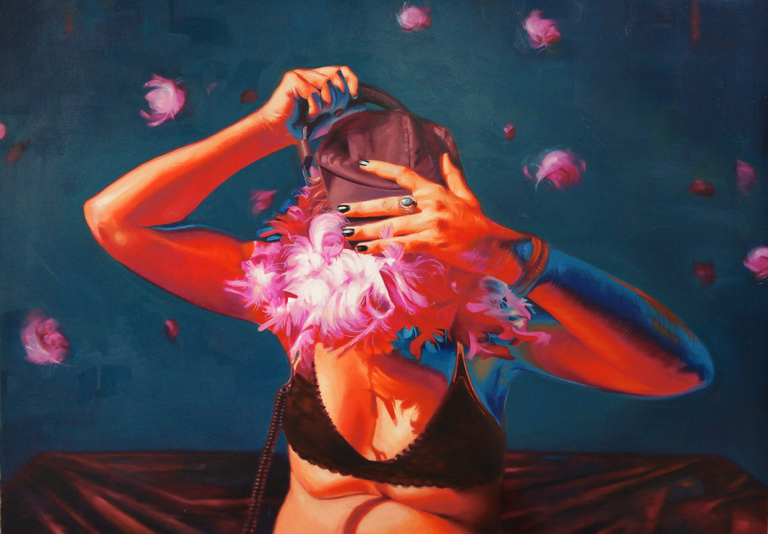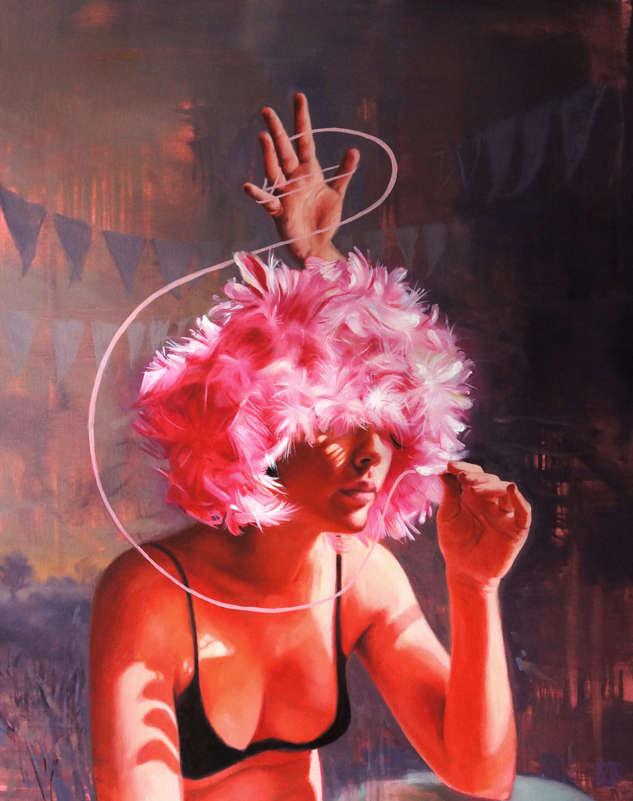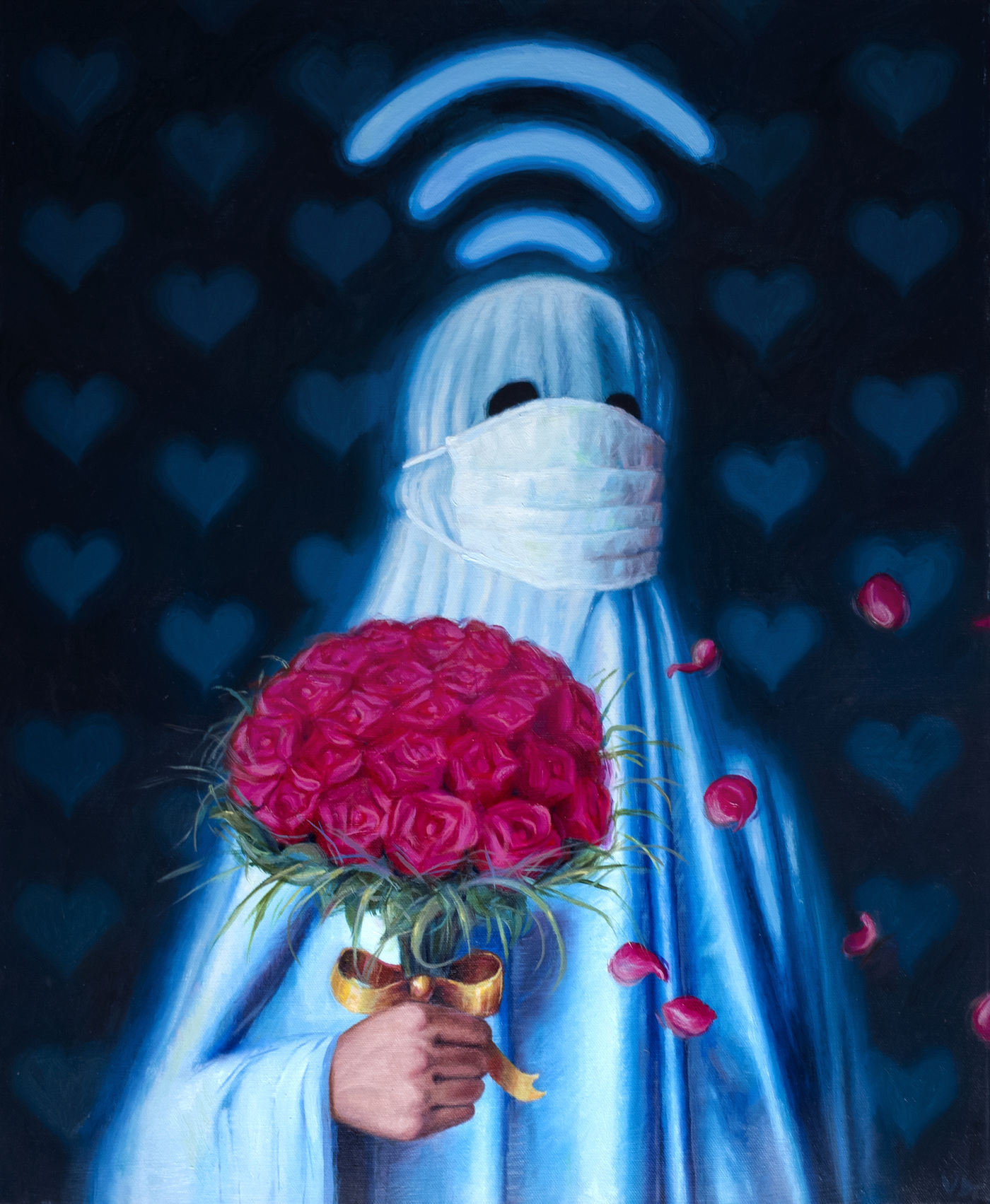 Une série de peintures qui explore, de façon aventureuse, notre rapport pluriel à l’amour — entre jeux de miroir, illusions, reconnaissance, inconscience et mise en scène.